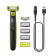 Trim, edge and shave any length of hair. Designed to cut hair, not skin. The Philips OneBlade is a revolutionary new hybrid styler that can trim, shave and create clean lines and edges, on any length of hair. Forget about using multiple steps and tools. OneBlade does it all. Unique OneBlade Technology: Philips OneBlade has a revolutionary technology designed for facial grooming. It can shave any length of hair. Its dual protection system - a glide coating combined with rounded tips - makes shaving easier and comfortable. Its shaving technology features a fast-moving cutter (12000x per min) so it's efficient - even on longer hairs. Trim away: Trim your beard to a precision stubble length with one of the included 3 stubble combs. 1mm for a 5 o'clock, 3mm for a tight trim, and 5mm for a long stubble. Edge it up: Create precise edges with the dual-sided blade. You can shave in either direction to get great visibility and see every hair that you're cutting. Line up your style in seconds! Shave it off: OneBlade does not shave as close as a traditional blade - so your skin stays comfortable. Go against the grain and shave off any length of hair easily on your face or body. Includes two blades - one for face, and one for body. Dual-sided blade: OneBlade follows the contours of your face, allowing you to easily and comfortably trim and shave all areas. Use the dual-sided blade to style your edges and create clean lines by moving the blade in any direction. Click-on skin guard: Attach the skin guard for an extra layer of protection on sensitive areas. Click-on body comb. Attach the body comb (3 mm) for an easy trim in any direction. USB-A charging: Can be charged at home or on the road, perfect for your daily routine and for travel. 8 Hour Charge, 45 minutes run time. Blade that doesn't fade easy: Durable stainless-steel blade that lasts up to 4 months of usage to keep that fresh feel. When the replacement indicator - eject icon - will appear on the blade, the blade performance may no longer be optimal. It is time to consider changing the blade for the best shaving experience. What's in the box 1 x Philips OneBlade Face & Body Handle 1 x Original Blade 1 x Click on Body Comb 3 x Stubble combs (1,3,5 mm) 1 x USB Charging Cable (Power Adapter not included)